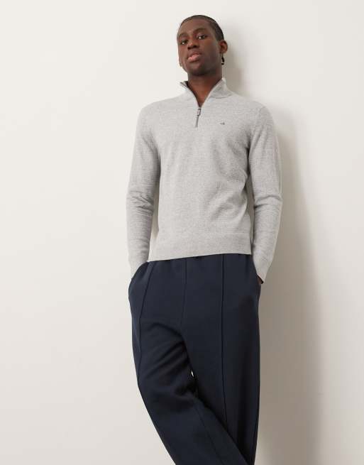 Calvin Klein – Jasnoszary dzianinowy sweter z zapięciem na suwak pod szyją
