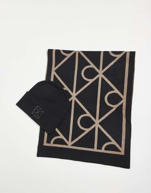 Calvin Klein Jeans – Czarny zestaw podarunkowy: czapka beanie z monogramem i szalik