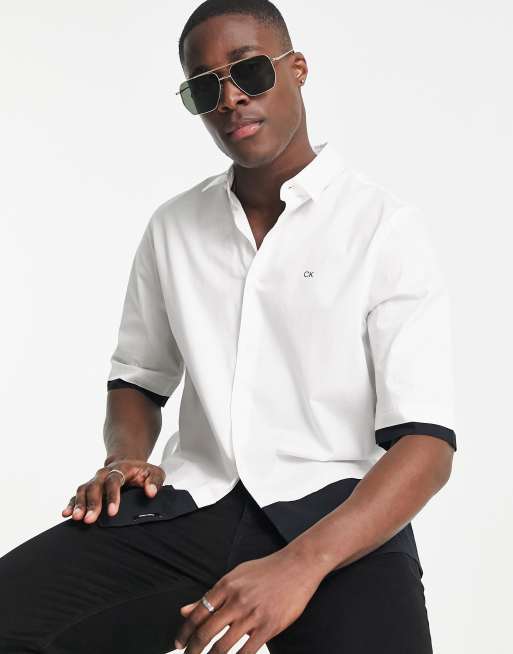 Calvin Klein – Koszula z krótkim rękawem we wzór z biało-czarnymi blokami kolorów