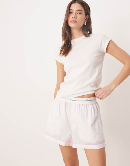 Calvin Klein – Valentines – Różowe popelinowe szorty od piżamy w paski
