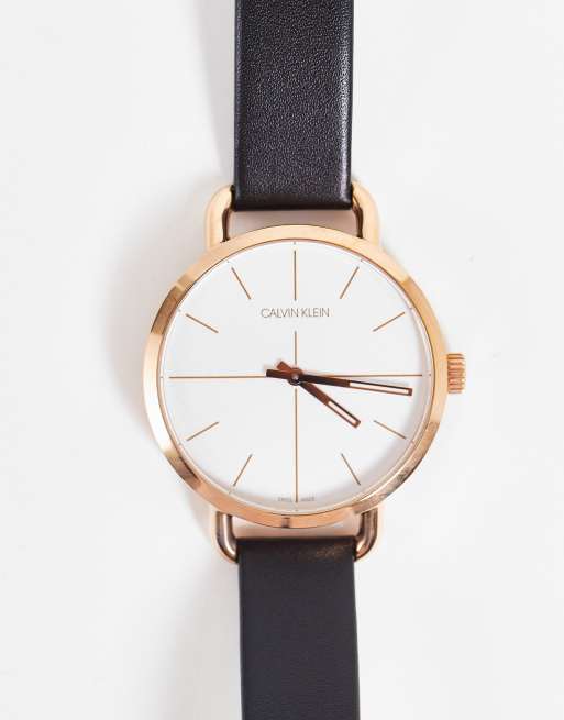 Calvin Klein – Zegarek ze złotymi detalami na skórzanym pasku