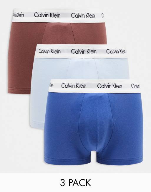 Calvin Klein – Zestaw 3 par bokserek w kolorach niebieskim, jasnoniebieskim i rdzawym