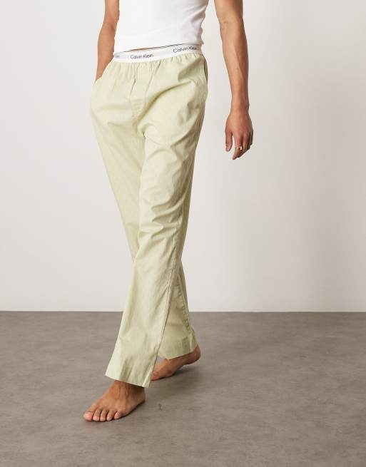 Calvin Klein – Zielone bawełniane spodnie od piżamy we wzór z monogramem