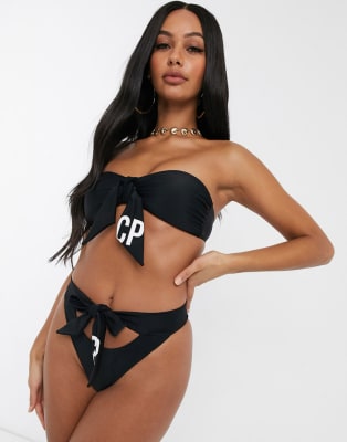 Candy Pants – Czarny strój kąpielowy bikini bandeau z wiązaniem z przodu