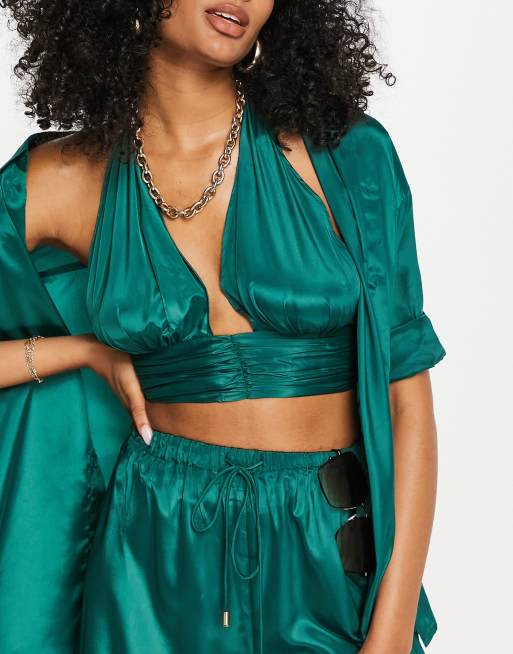 Candypants – Zielony krótki top plażowy z głębokim dekoltem halter, część zestawu