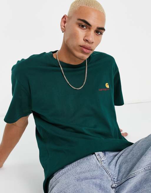 Carhartt WIP – American Script – Zielony T-shirt o luźnym kroju