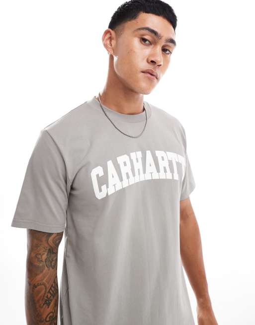 Carhartt WIP – Beżowoszary T-shirt w stylu uczelnianym