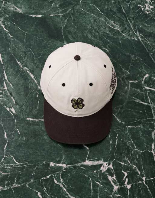 Carhartt WIP – Biało-brązowa czapka baseballowa z daszkiem z koniczynką