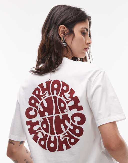 Carhartt WIP – Biały T-shirt z nadrukiem z logo na plecach