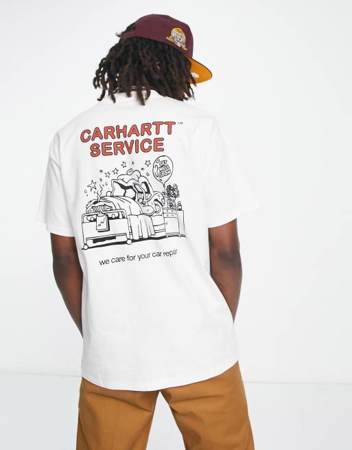 Carhartt WIP – Biały T-shirt z napisem „car repair"