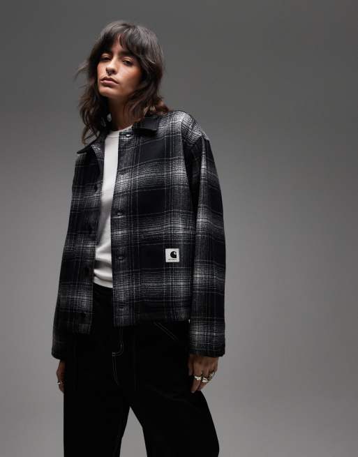 Carhartt WIP – Brennan – Czarna pudełkowa kurtka koszulowa w kratę