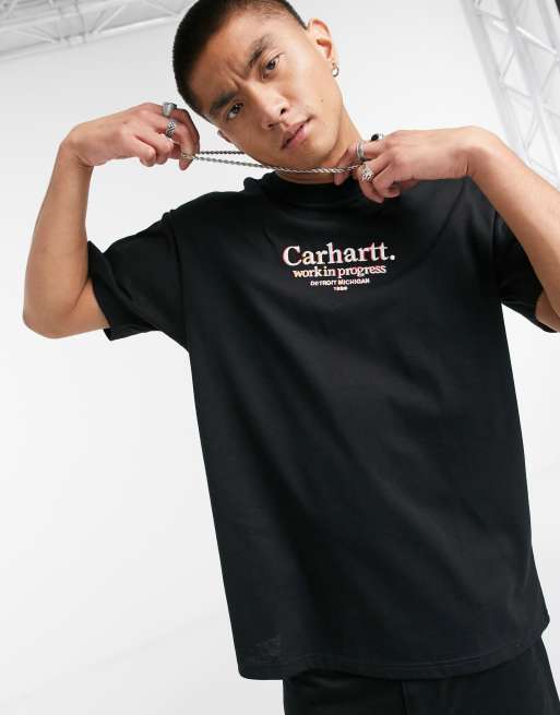 Carhartt WIP – Commission – Czarny T-shirt z logo na klatce piersiowej