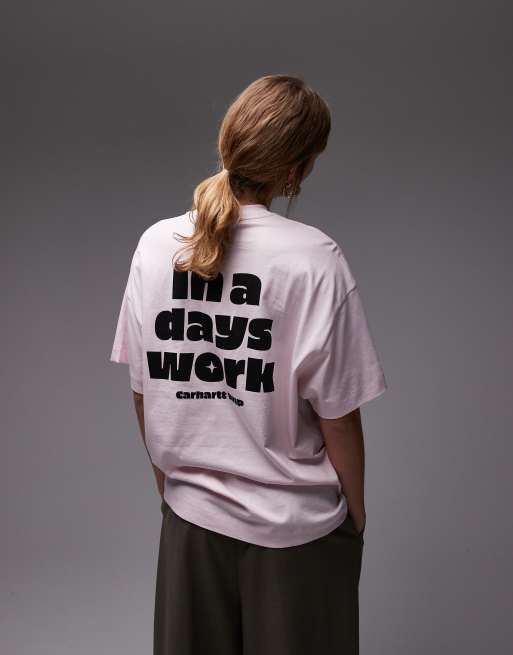 Carhartt WIP – Day Off – Różowy T-shirt z nadrukiem na plecach
