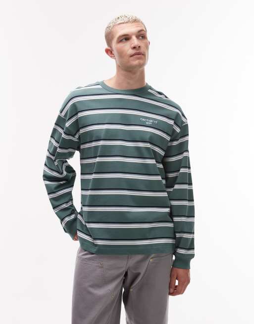 Carhartt WIP – Holm – Zielony T-shirt w paski z długim rękawem