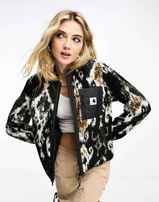 Carhartt WIP – Janet – Czarna kurtka z podszewką z kożuszka