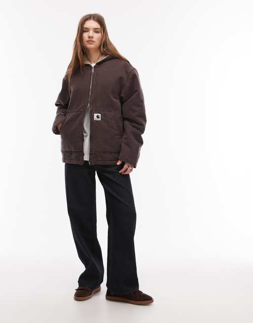 Carhartt WIP – OG Mitch – Ciemnobrązowa kurtka z kapturem i podszewką z kożuszka