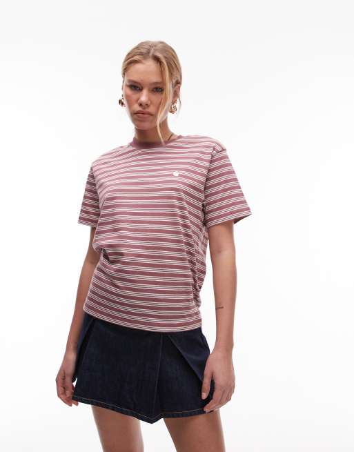 Carhartt WIP – Sydney – Różowy T-shirt z krótkimi rękawami w paski
