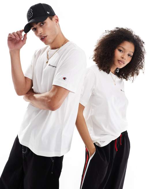 Champion – Biały T-shirt unisex z logo na piersi po lewej stronie