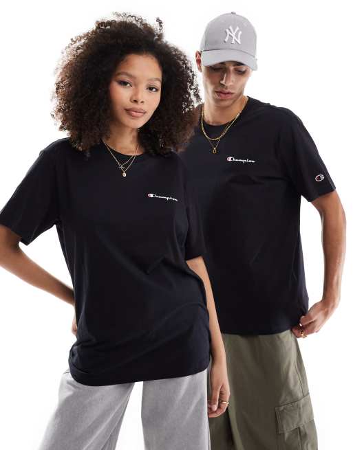 Champion – Czarny T-shirt unisex z logo na piersi po lewej stronie