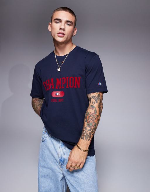 Champion – Rochester – Granatowy T-shirt w uczelnianym stylu