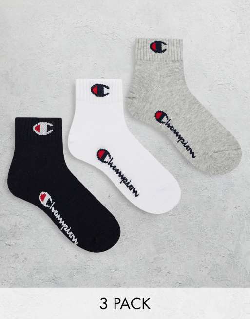 Champion – Zestaw 3 par skarpetek do kostki z logo w kolorach szarym, białym i czarnym