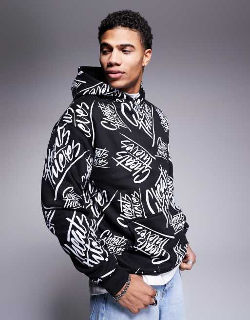 Cheats & Thieves – Czarna bluza z kapturem o gramaturze 320 g/m² ze wzorem z logo na całej powierzchni