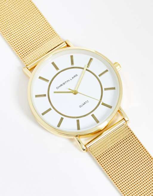 Christian Lars – Męski zegarek z dużą tarczą na złotej siateczkowej bransolecie