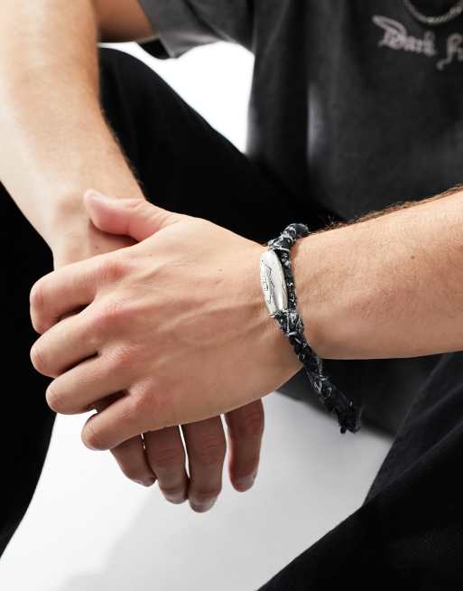 Classics 77 – Czarna bransoletka w bandanowy wzór z koralikiem
