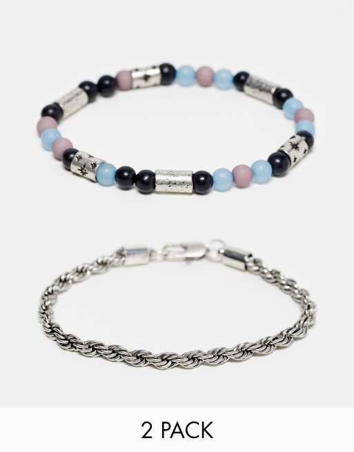 Classics 77 – Podwójna bransoletka z koralikami w kolorze srebrnym i niebieskim