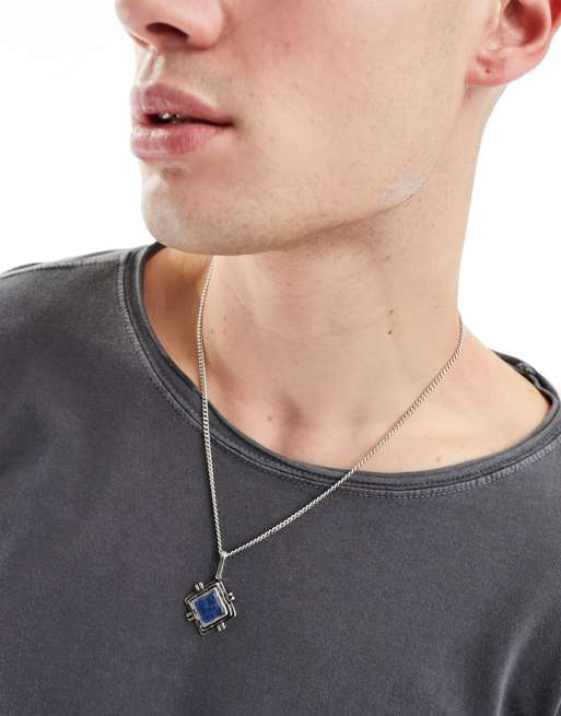 Classics 77 – Tikal – Naszyjnik w kolorze srebra z niebieską zawieszką