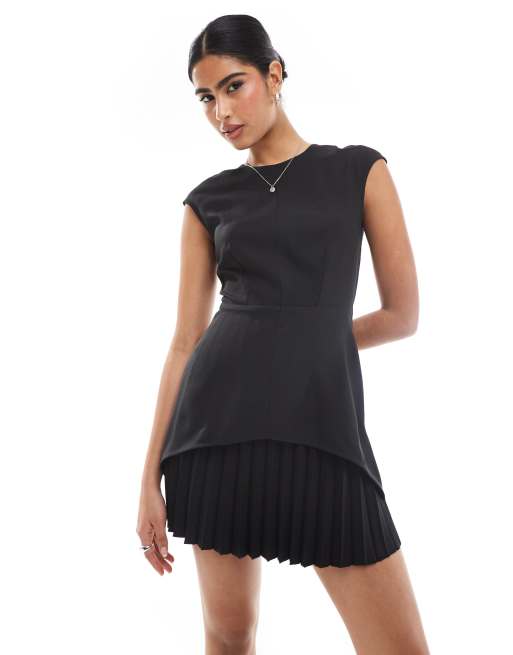 Closet London – Czarna sukienka mini z plisowaną spódnicą