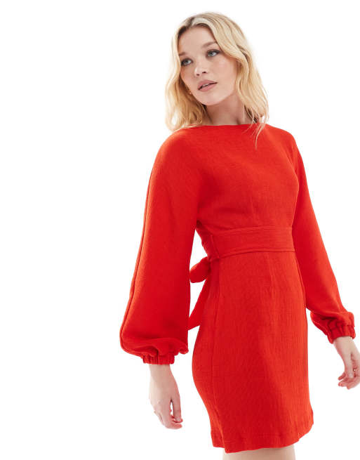 Closet London – Czerwona prążkowana sukienka mini z balonowymi rękawami