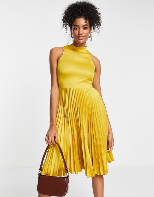 Closet London – Żółta plisowana sukienka midi z wysokim dekoltem
