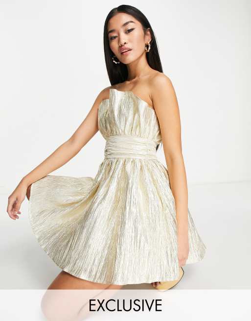 Collective The Label Exclusive – Marszczona sukienka mini z dekoltem bandeau w kolorze szampana