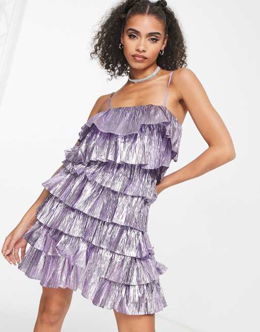 Collective the Label Exclusive – Metaliczna cynowa sukienka warstwowa mini