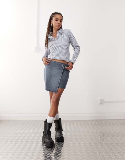 ASOS DESIGN – Niebieska jeansowa spódnica kopertowa