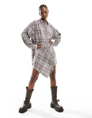 COLLLUSION – Asymetryczna sukienka koszulowa mini w szarą kratę