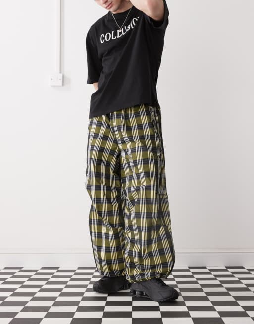 COLLUSION – Bardzo obszerne spodnie ze wzorem w kratę