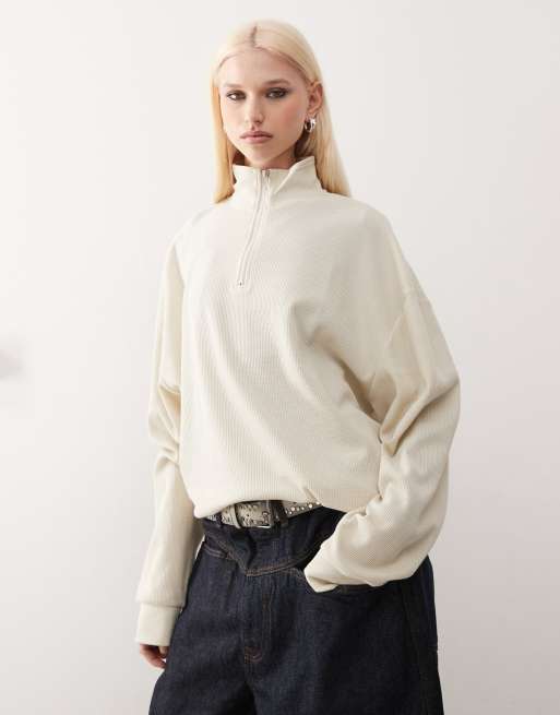 COLLUSION – Beżowokremowa bluza dresowa z wysokim kołnierzem i suwakiem pod szyją