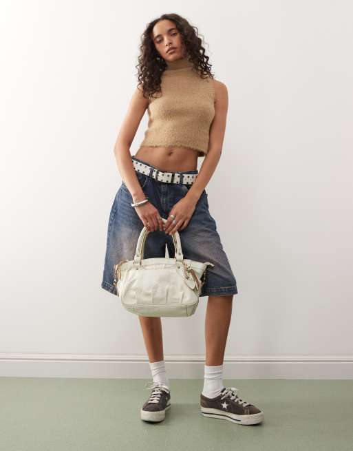 COLLUSION – Beżowy podkoszulek z puszystej dzianiny z odwijanym golfem