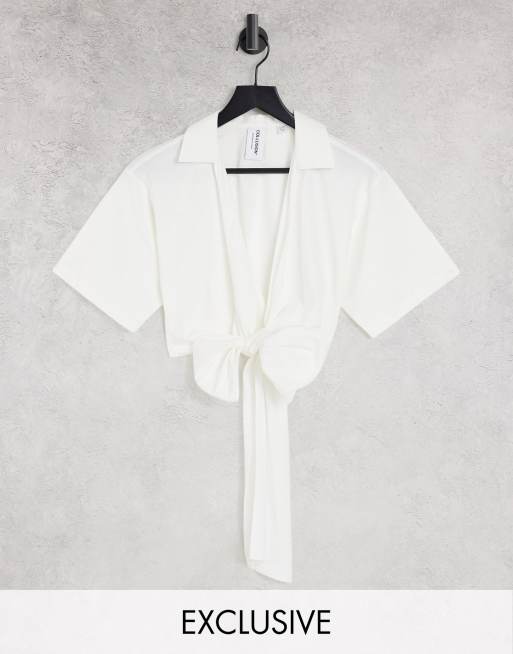 COLLUSION – Biała kopertowa koszula o krótkim fasonie