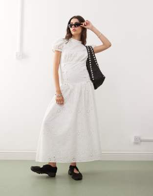COLLUSION – Biała wiązana z boku sukienka midaxi z haftu angielskiego