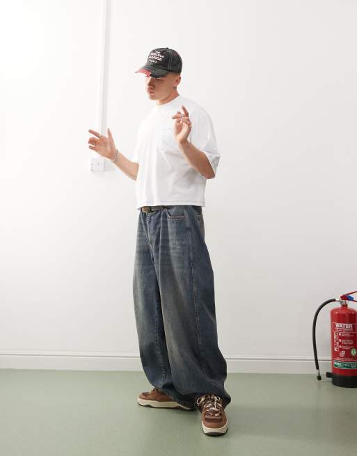 COLLUSION – Biały krótki T-shirt o pudełkowym fasonie