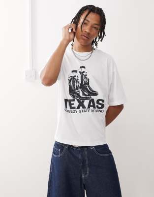 COLLUSION – Biały T-shirt z kowbojską grafiką i napisem „Texas”