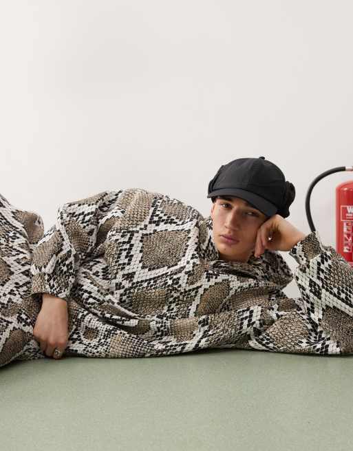 COLLUSION – Bluza z kapturem we wzór skóry węża o pudełkowym kroju skater, część zestawu