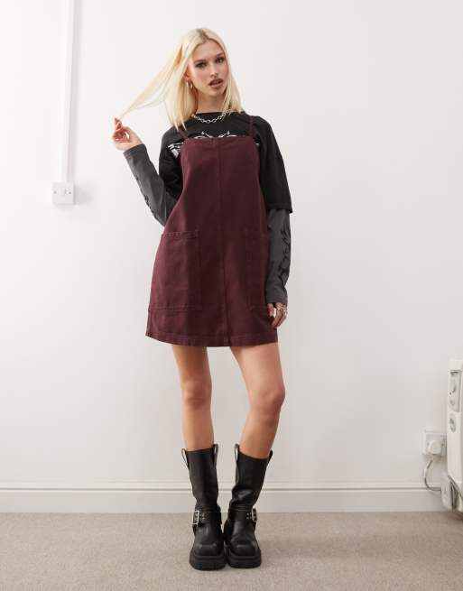 COLLUSION – Bordowa jeansowa sukienka na szelkach