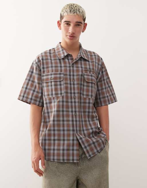 COLLUSION – Brązowa pudełkowa koszula w stylu skater w kratkę