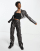 COLLUSION – Brązowy zestaw z imitacji skóry: krótka kurtka i spodnie