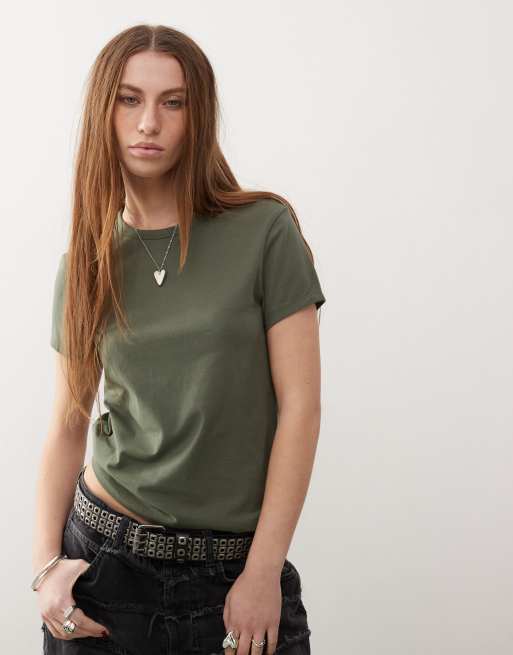 COLLUSION – Ciemnozielony dopasowany T-shirt ze skośnym rękawem
