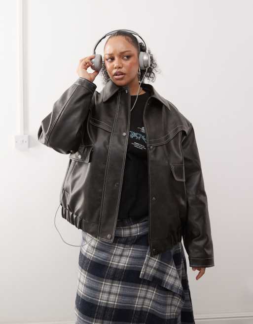 COLLUSION Curve – Brązowa kurtka bomberka z imitacji skóry